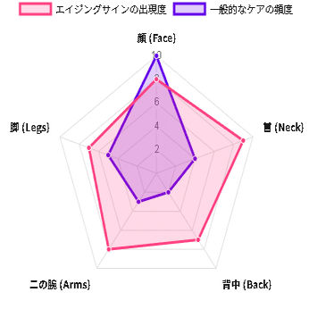 脚・二の腕: 引き締まりの低下と、肌の質感の乱れ。